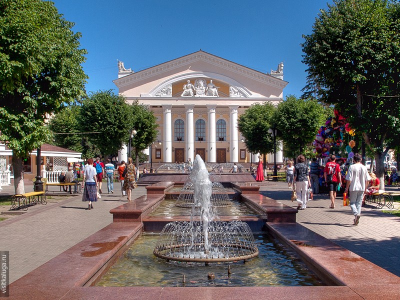 Театральная площадь Калуги была основана в середине XX века. Ранее на этом месте находилась площадь под названием Новый Торг. На сегодняшний день Театральная площадь представляет собой знаковую достопримечательность Калуги, где любят проводить свободное время местные жители.