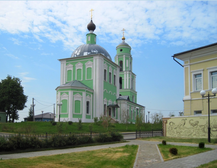 Церковь Сошествия Святого Духа в Козельске была построена в 1789 году на средства купца Петра Минаева. Вначале это был просто каменный храм в стиле провинциального барокко. Спустя более века, к храму пристроили каменную колокольню и обнесли оградой. Кроме основного престола, было еще два: во имя
